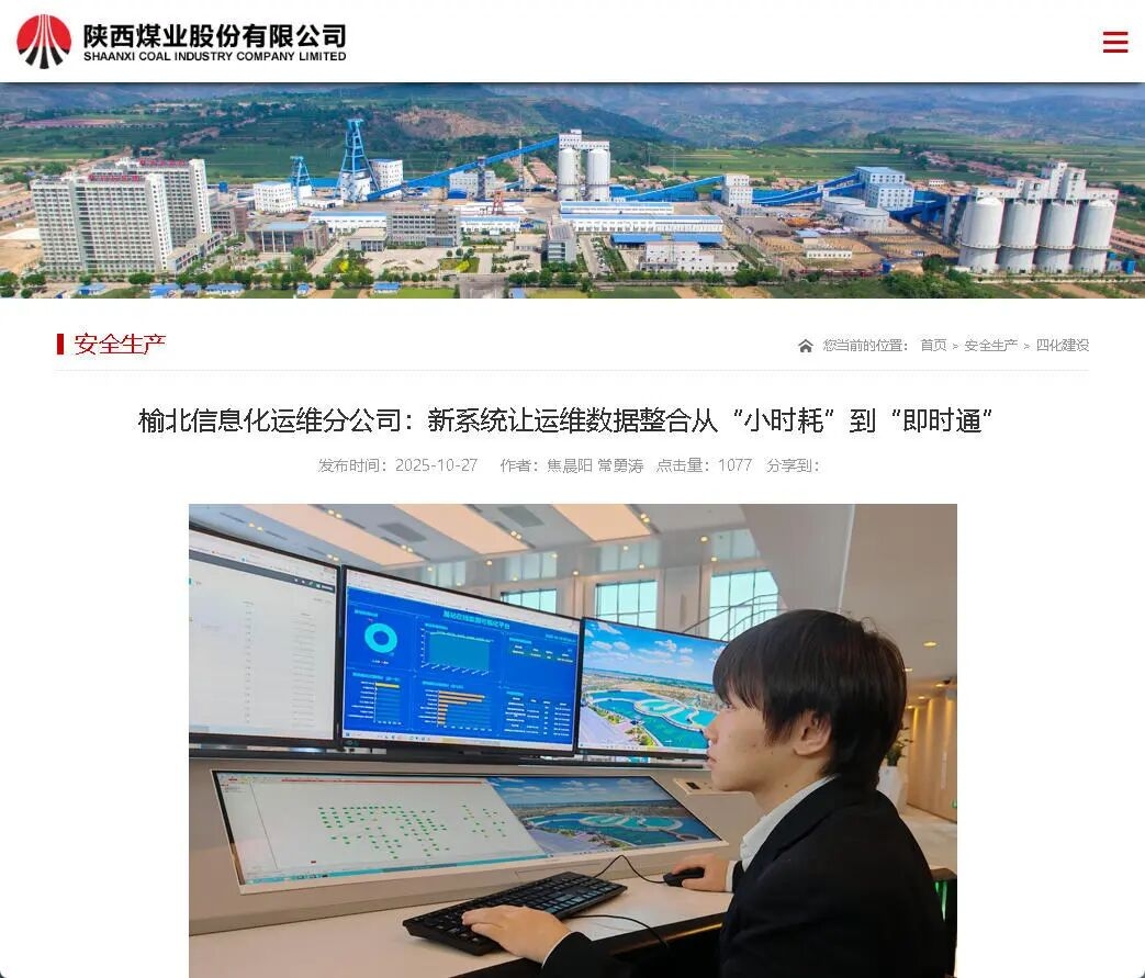 陜西煤業官網丨榆北信息化運維分公司:新系統讓運維數據整合從“小時耗”到“即時通”
